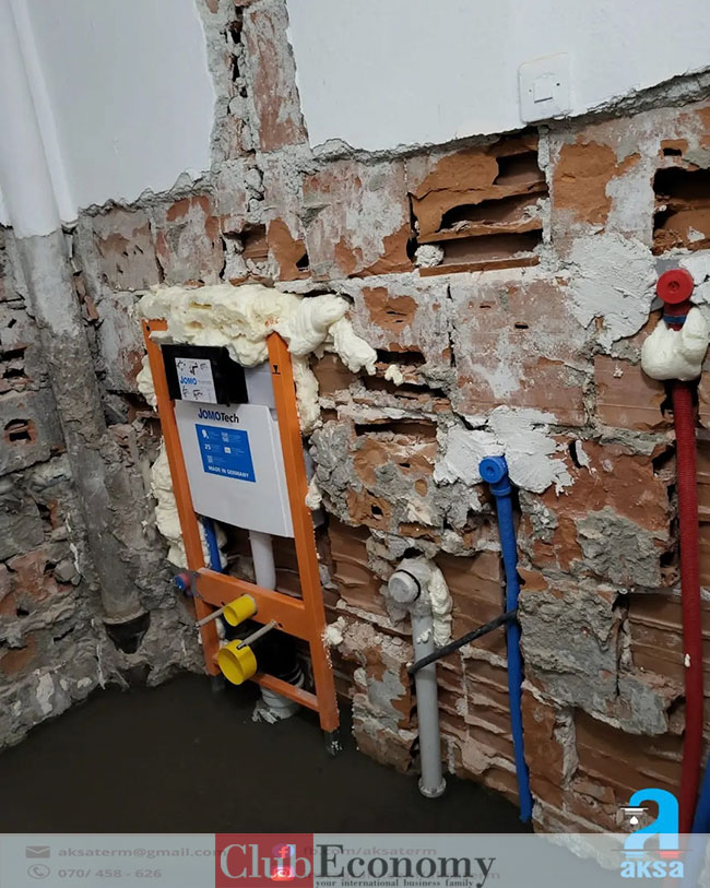 АКСА се занимава и со изведба на водоводни и канализациони инсталации во внатрешноста на градежните објекти, па се до поврзувањето со примарната мрежа, повторно според принципот клуч на рака. Употребуваме исклучиво квалитетни материјали кои ги задоволуваат и најстрогите стандарди. Нашиот тим на мајстори е обучен да ги монтира и најесклузивните санитарии.