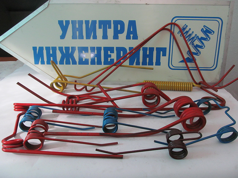 • Жичени пружини за земјоделска механизација од патентирана жица, со дебелина од Ф 4 мм, до Ф 10 мм