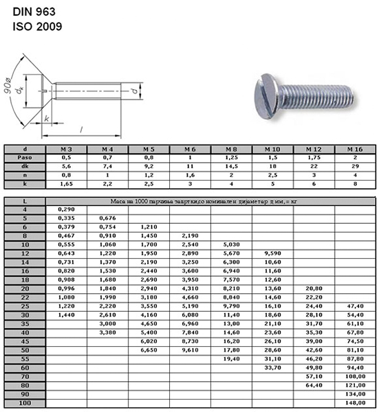 - Машински завртки во стандардите DIN 933 и DIN 931