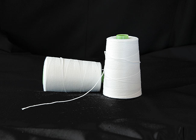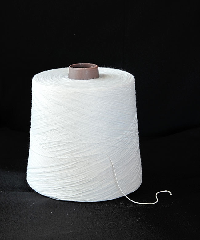 100 % полиестерно предиво од нумерација Nm 20/1 во полиестерно нормална бела боја.